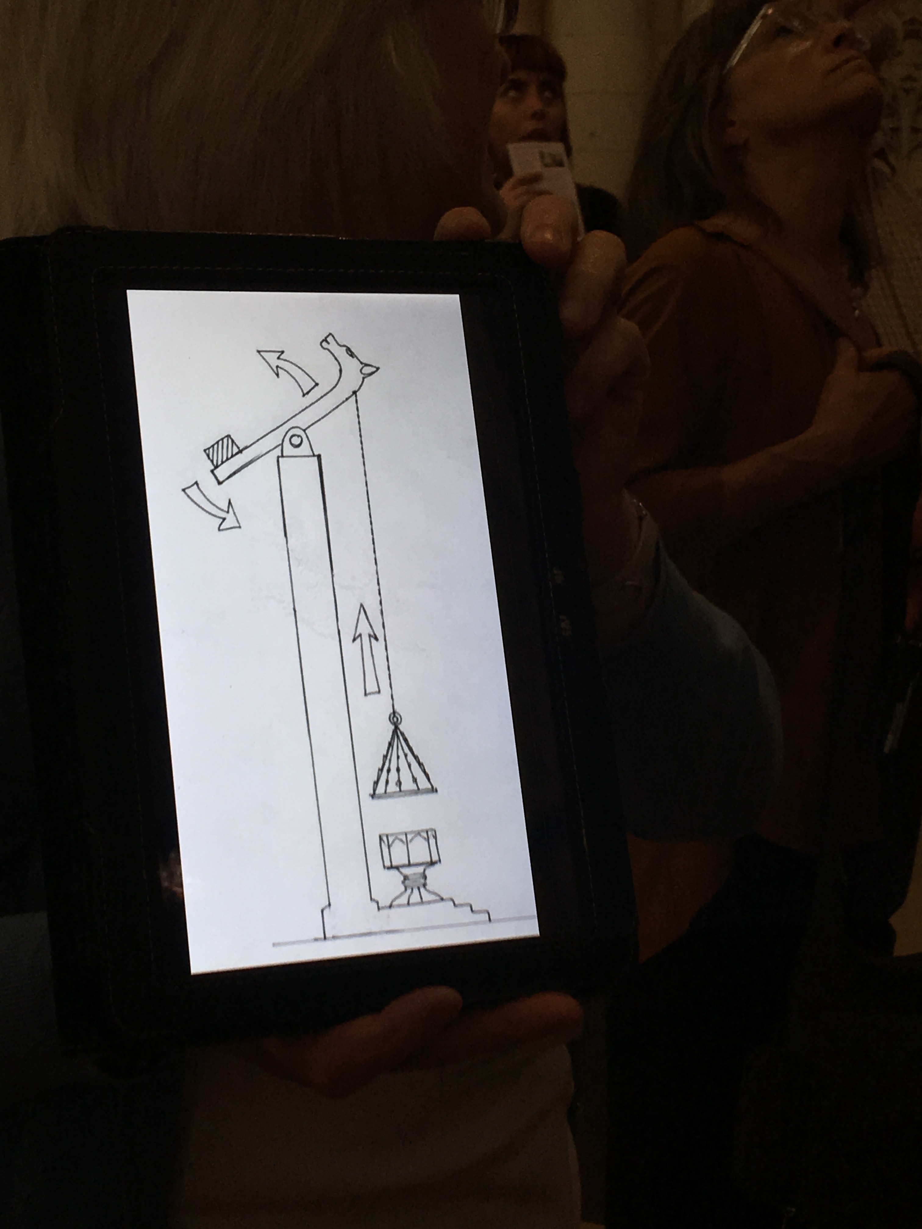 There is a dragon in York Minster that is actually a balance beam lift. The diagram of how it works is on the left and the dragon on the right and they probably used it to lift the lid off the baptismal font…they had some really large ones.