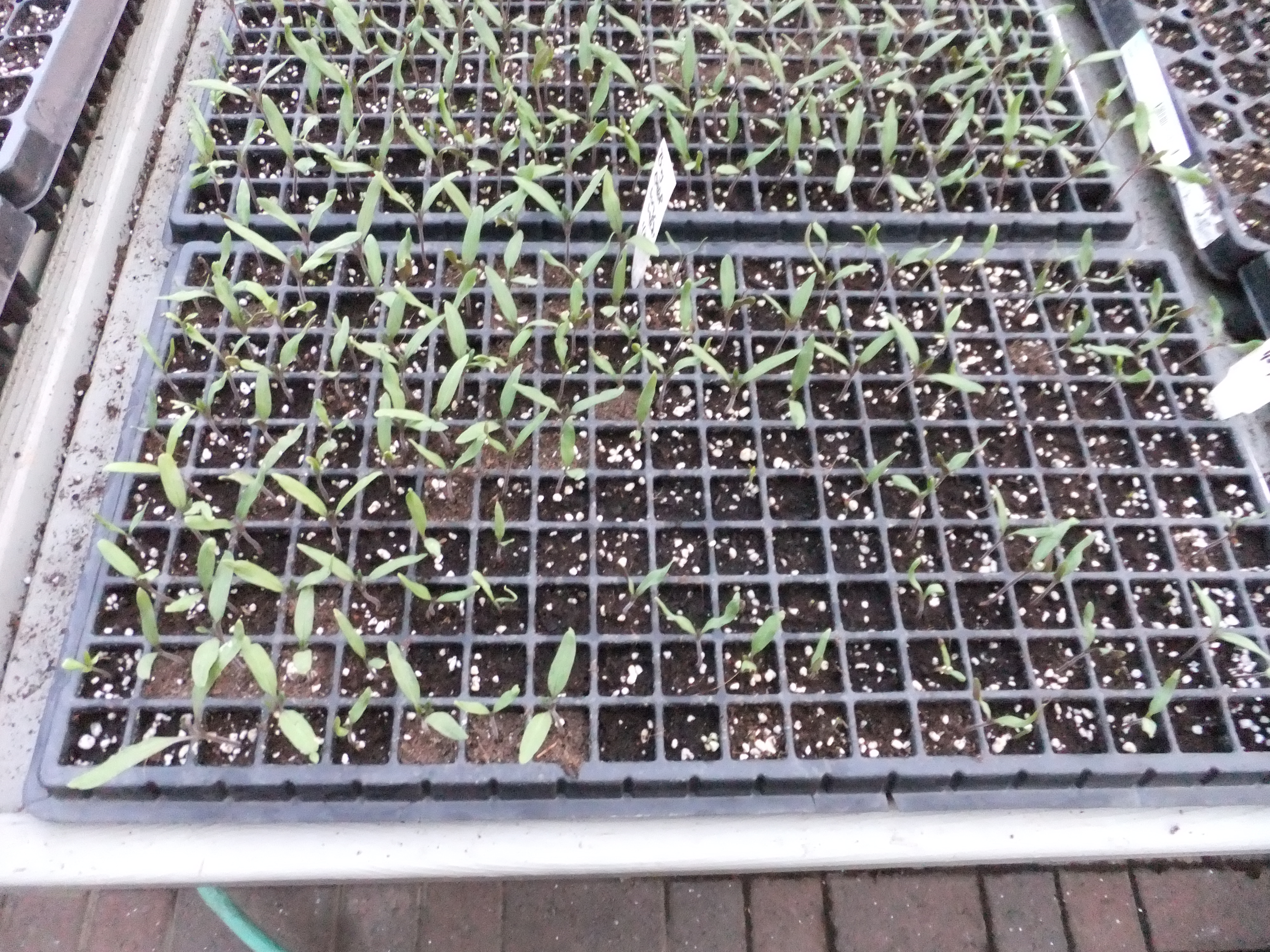 Here is a photo from Jones’ Organic Farm and CSA in Chelmsford, MA.  Seeds from the same package were separated according to size and planted in the same flat.  The largest seeds were planted on the left and the smaller ones on the right.  The difference in germination and vigor of the larger seeds is quite startling.