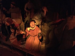 We visited a memorial to a pilgrimage that took place in 1389 or so. I don’t know why their tales are any better than ours but that’s history for you. We had to pay a penny to go in and I’ll tell you, I was saving that penny for a big mug of ale and a beef pie for my dinner. But it was worth it to see those pilgrims of yore and hear their tales…that old dame had five husbands (not all at once) and she choose the last one because she admired his thighs as he carried her forth deceased husband’s casket! Now that’s a women…keeping her priorities straight. That’s her telling her tale and below her are some of the other characters who told tales.